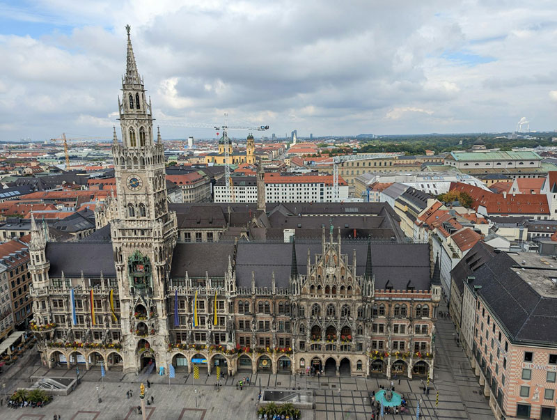 Belediye binasının kulesine çıkarak tüm şehri kuş bakışı izleyebilirsiniz. Güneşin batışı sırasında Marienplatz manzarası, ziyaretçilerin unutamayacağı bir görüntü oluşturur. Neues Rathaus, Münih’in tarihî ve estetik zenginliğini yansıtan mimari bir başyapıttır. Daha fazla detay için tıklayın.
