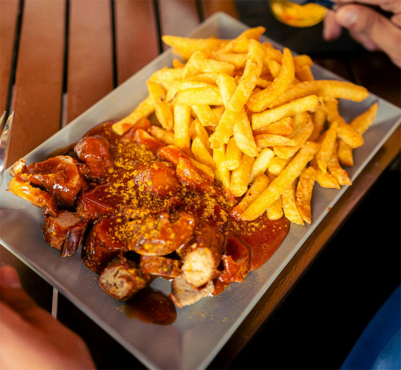 Currywurst, Almanya’nın modern sokak mutfağının simgelerinden biridir. Dilimlenmiş sosisin üzerine domates bazlı, köri aromalı bir sos dökülerek hazırlanır. İlk olarak Berlin’de ortaya çıkan bu lezzet, kısa sürede ülke geneline yayılmıştır.